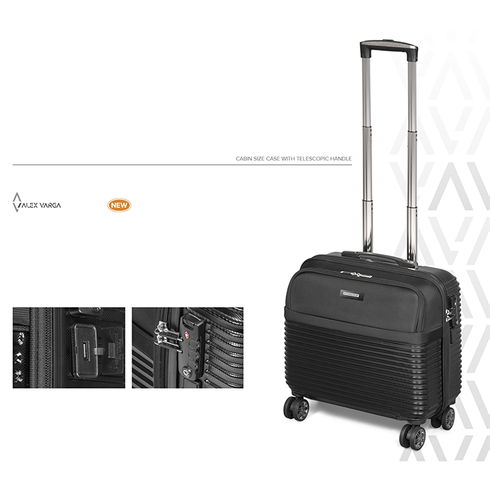 This tiny Alex Varga Odessa Cabin Case makes for a high-impact promotional item that is perfect to take your brand across the world. Made from premium quality Material: in a classy design, this cabin-size luggage bag is ideal for weekend travel. Featuring a secure combination lock, USB charging port, a telescope handle, and four wheels for easy movement Ð this smart luggage trolley can be customised with your logo for unlimited exposure, effortlessly. Material: ABS and 600D Product Size: 22 (h) x 45 (l) x 43 (w)
